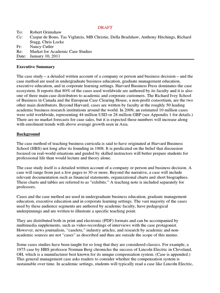 A case study should include background information on the specific topic, an analysis of the case under student showing problems or effective strategies, as well as recommendations. See how companies are using marketing automation in microsoft dynamics 365 to grow sales. The value of the case study approach is well recognised in the fields of business, law and policy, but somewhat less so in health services research. Then depending on the type of case study and the actions proposed by the researcher, the researcher could determine the possible products of the study. Choose any document below and bravely use it as an example to.